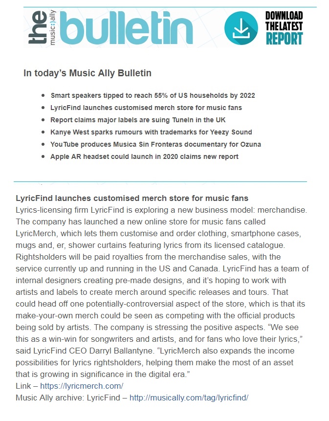 “As of 2014, every significant lyric website in English is now licensed or shut down,” proclaims LyricFind CEO Darryl Ballantyne. He would know. The company, which he co-founded, has spent the last decade creating a lyric licensing infrastructure, which launched a new, multi-million dollar revenue stream for publishers and empowers websites and music apps to legally use lyrics for a variety of uses.